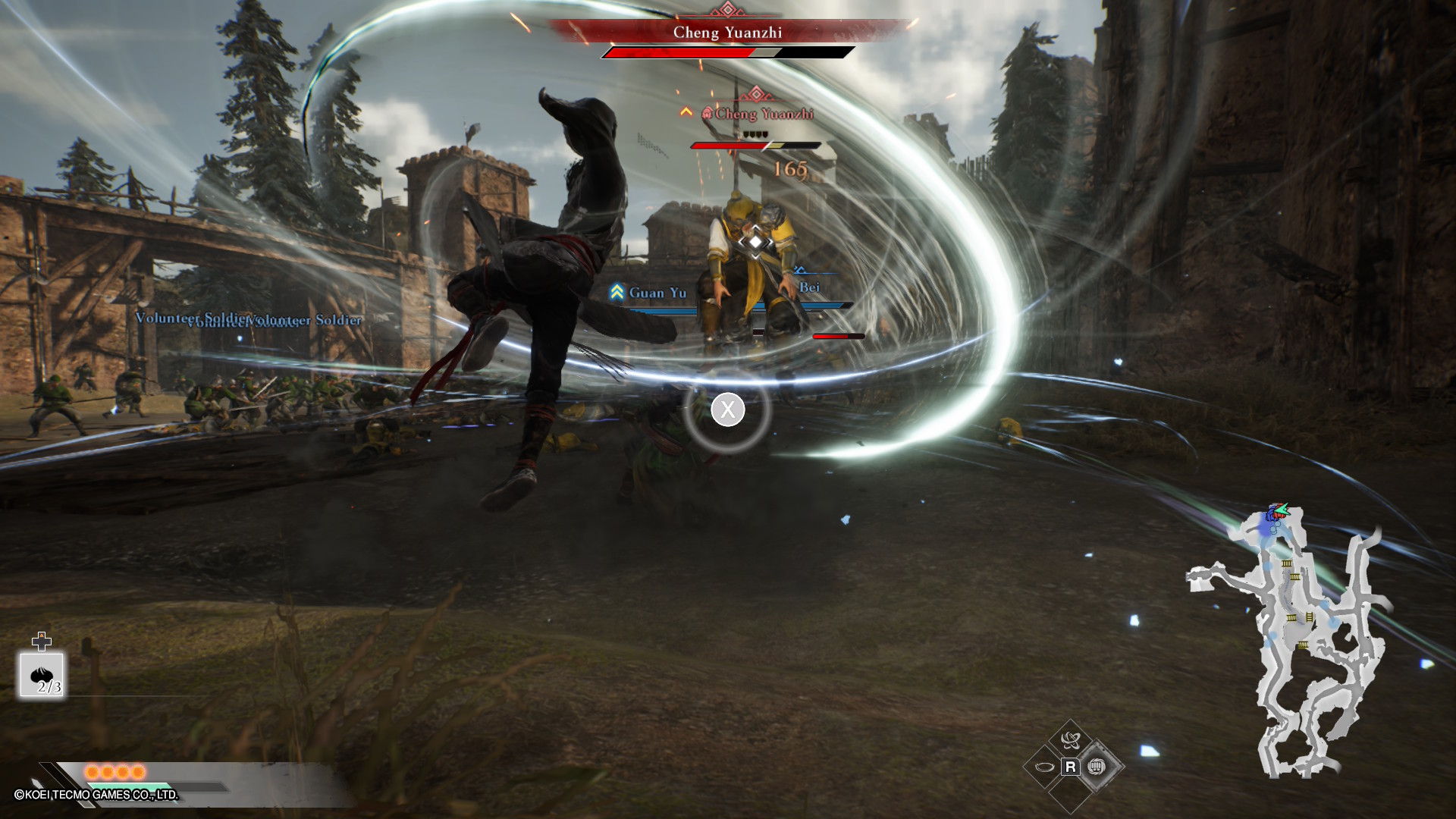 Myöhemmässä vaiheessa esitellään pelaajan ympärillä taisteleva henkilökohtainen sotilasjoukko, joka osaa suorittaa myös tehokkaita superhyökkäyksiä, kuten ratsuväkirynnäköitä ja tuhoisia nuolisateita. Omat sotilaat eivät kuitenkaan ole kuolemattomia, joten taktinen perääntyminen ja rivien täydentäminen lähimmässä tukikohdassa on välillä paikallaan. Lisäys toimii hyvin, mutta mahdollisessa jatko-osassa olisi kiinnostavaa päästä komentamaan joukkoja aktiivisemmin kenraalin roolissa. Esimerkiksi mahdollisuus komentaa apureita hyökkäämään tai puolustamaan pisteitä kartalla puuttuu, vaikka se on ollut mukana esimerkiksi Hyrule Warriorseissa.