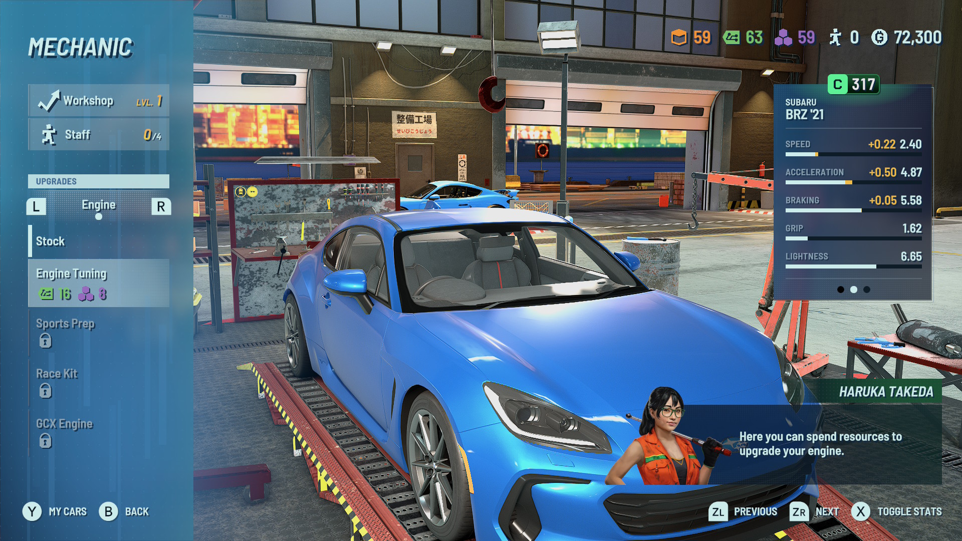 Autojen ulkoasun muokkaaminen on kiitettävän monipuolista, sillä niin puskurit, konepellit, spoilerit kuin vanteetkin voi valita useamman vaihtoehdon väliltä. Tekniikan päivittäminen jää sen sijaan melko pintapuoliseksi. Suorituskykyparannukset jakautuvat kyllä muun muassa aerodynamiikka-, jarru- tai moottorikategorioihin, mutta eri osia ei pysty vaihtamaan lähellekään samalla tarkkuudella kuin monissa kilpailevissa ajopeleissä. Ihan Switchin omaksi Gran Turismoksi Gear.Clubia ei siis voi kutsua vieläkään virittelyn eikä varsinkaan autovalikoiman osalta. Oikeat automerkit ja vajaat 40 autoa kuitenkin takaavat sen, että valikoimasta löytää todennäköisesti ainakin yhden omaan makuun sopivan kaaran, oli se sitten Nissan GT-R tai vaikka Honda Civic Type-R.