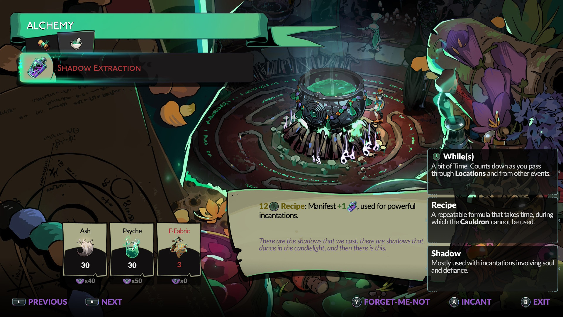 Kyvyt valitaan aina kolmesta vaihtoehdosta ja osoitetaan tietylle liikkeelle, ellei voimassa ole ehdotuksien määrää vähentävä kirous. Päivitettävien liikkeiden osalta käytössä on kevyt ja raskas isku, maahan ilmestyvä taikakehä sekä pyrähdys, jota voi kehittää joko paremman väistön tai lisähyökkäyksen suuntaan. Lisäksi Kuun titaanilta saa vielä erillisen voimaloitsun, joka latautuu tappamalla tarpeeksi vihollisia.