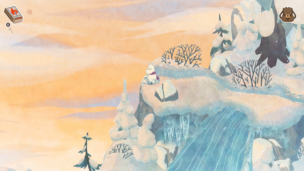 Tarina etenee verkkaisesti, ja pelin suurin viehätys piileekin talvisessa Muumilaaksossa ja sen tutkimisessa. Maailma on tolkuttoman kaunis, ja erityisesti lumifysiikat erottuvine polkuineen ja jalanjälkineen syventävät immersiota. Uusia alueita aukeaa tarinassa etenemisen ja uusien työkalujen avulla myötä tasaiseen tahtiin, eikä paikasta toiseen ole koskaan liian pitkä matka. Myös rauhallinen ääniraita tukee tunnelmaa erinomaisesti.
