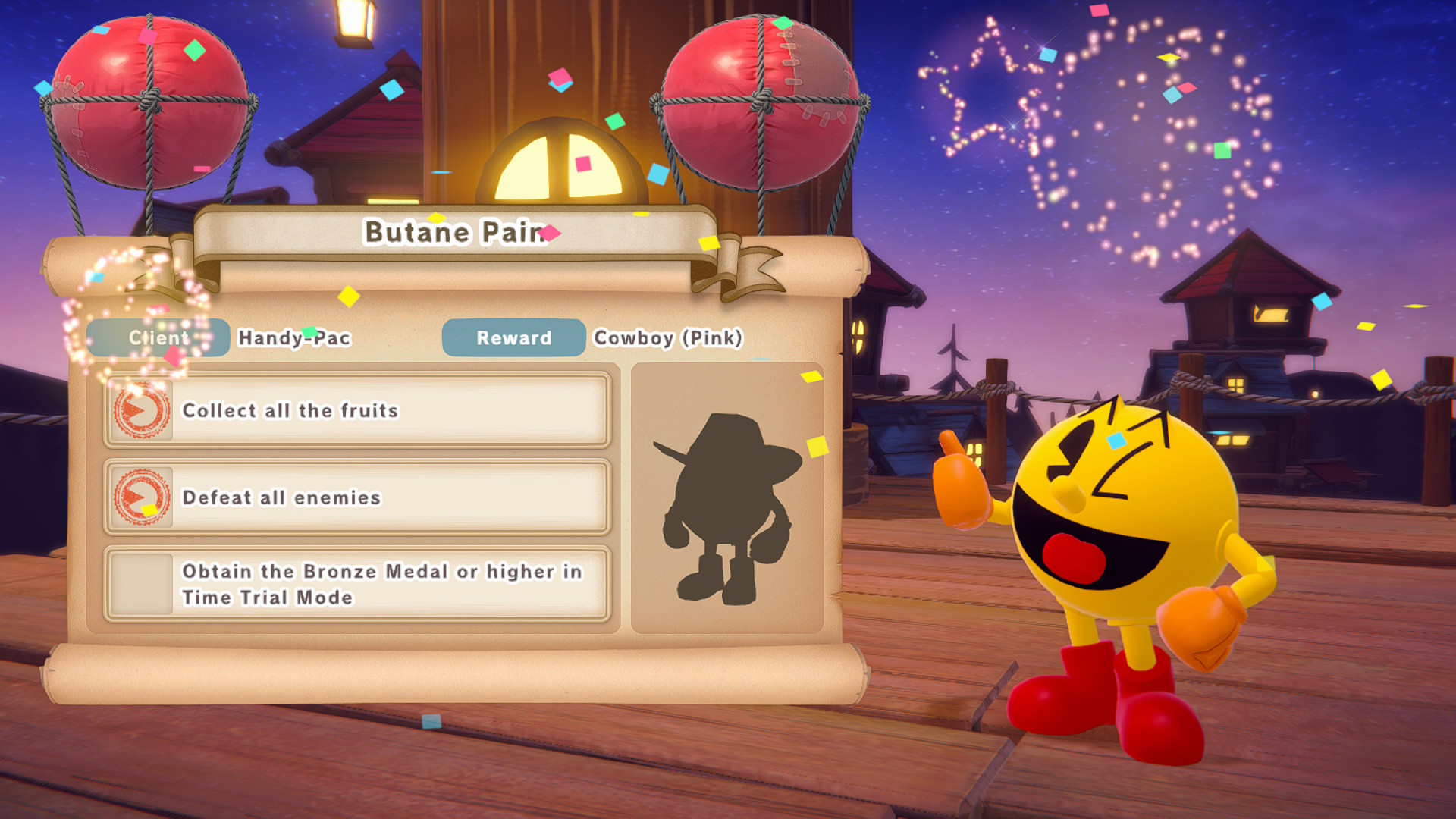 Päätarinan jälkeen avautuu myös täysin uusi lisäseikkailu, joka koostuu vaikeammista remix-kentistä ja -pomotaisteluista, joihin on tehty sen verran muutoksia, ettei niitä aina edes erota alkuperäisistä malleistaan. Ja jos kenttien tavallinen läpäisy alkaa kyllästyttää, voi kokeilla vaihtoehtoista aika-ajotilaa, jossa kentät tulee läpäistä minuutin tai kahden sisällä kirkkaimpien mitalien saavuttamiseksi. Crash Bandicootin vastaavan pelitilan tavoin kellosta voi myös syödä sekunteja keräämällä matkan varrelta esineitä, joten kampanjan puolella opittu suora reitti ei ole välttämättä aikahaasteessa kaikkein nopein. Nopeuspelaamisen näkökulmasta itseäni harmittaa kuitenkin se, kuinka nopeutta keräävä syöksyhyökkäys menettää kaiken vauhtinsa heti hypyn alussa, mikä rajoittaa Pac-Manin speedrun-potentiaalia huomattavasti.