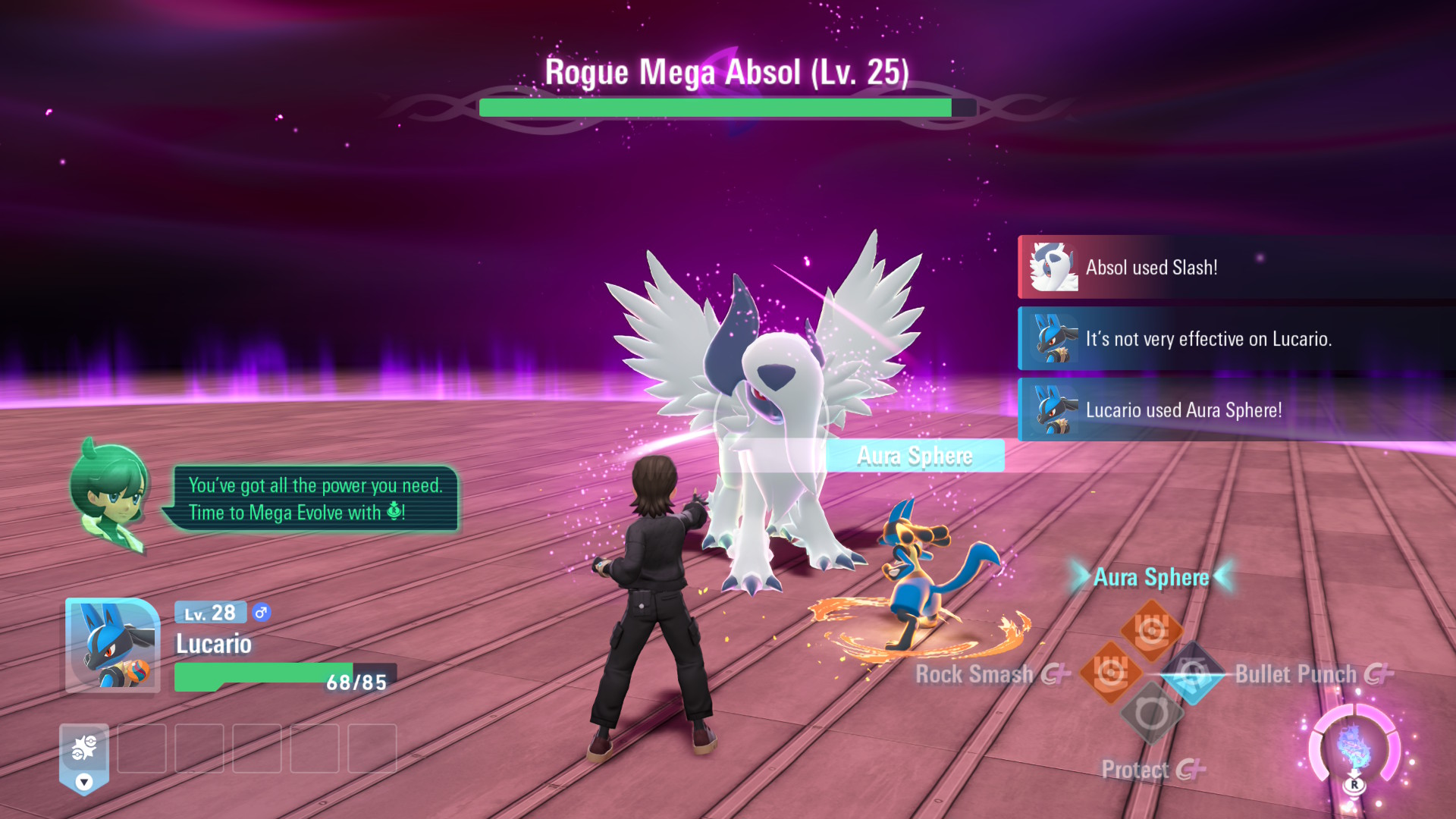 Uusia Pokémoneja tai alueellisia variantteja Z-A:ssa ei nähdä, mutta moni vanha tuttu saa uuden megaevoluution, minkä lisäksi X:ssä ja Y:ssä esitellyt muodot tekevät paluun. Itse olen aina pitänyt väliaikaisia megamuotoja parhaana tapana tasapainottaa pelikenttää ja tuoda vanhoja Pokémoneja takaisin parrasvaloihin, mutta jostain syystä Game Freak sysäsi idean vuosiksi syrjään kaiken maailman Z-liikkeiden, jättiläis-Pikachujen ja viimeisimpänä hölmöjä päähineitä Pokémoneille lisänneiden kristallien tieltä, vaikka niiden käyttötarkoitus on melkein sama. Ne Pokémonit, joilla ei ole omaa megakiveä, voivat hyödyntää Z-A:ssa samaa kerättävää energiaa perushyökkäysten Plus-versioihin, sopivasti Switch-ohjaimen plussan muotoista painiketta ensin painamalla.