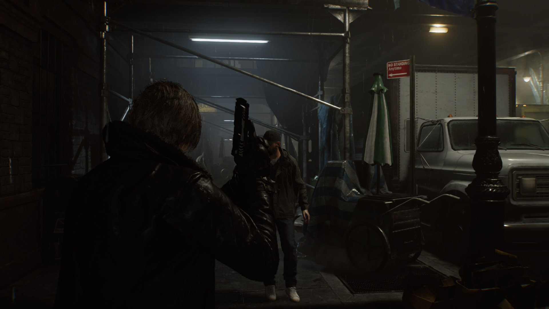 Toiminnan mies Leonin kanssa kamera ohjeistetaan pitämään sankarin selän takana. Asetusta voi tosin vaihtaa kesken pelin, joten valintaa ei tarvitse pähkäillä ja pohtia montaa tuntia etukäteen. Gracellakin pelatessa vastaan tulee esimerkiksi paikkoja, joissa on etu nähdä enemmän ympärilleen ja hahmon selän taakse, vaikka pelottelun voima tästä vähenisikin. Keski-ikäistyneen Leonin osuudet muistuttavat sisällöllisesti enemmän taannoisia Resident Evil 2:n, 3:n ja 4:n uusioversioita. Hiippailu sekä vihollisten väistely vaihtuvat melko nopeasti kunnon mättöön. Leon pääsee heiluttelemaan miehekkäästi kaikkien vuosien jälkeen myös itse moottorisahaa – asetta, joka kuului Resident Evil 4:ssa vain legendaarisia pelotteluhetkiä aiheuttaneille vihollisille.