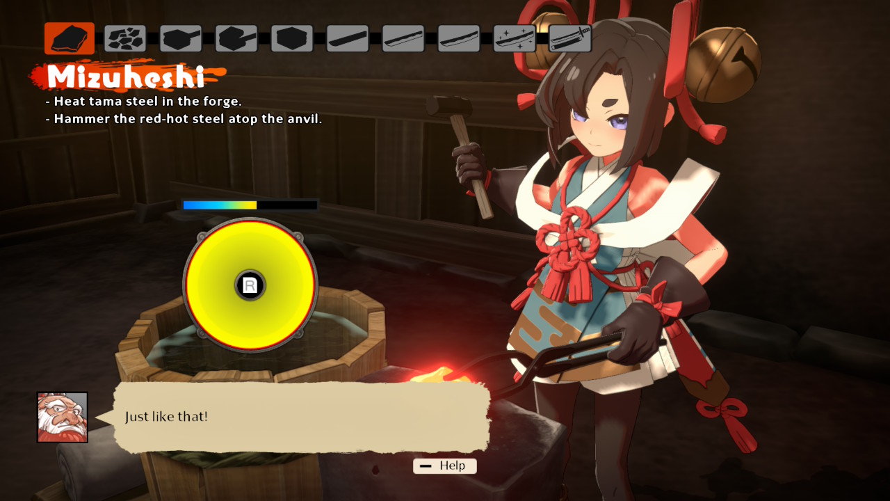 Jokainen pelattava rukouslapsi on varustettu pitkällä ja lyhyellä miekalla, mutta jokainen käyttää niitä omalla tavallaan. Ketterä Mutsumi osaa tehdä wakizashillaan nopean edestakaisen loikkahyökkäyksen. Raskaanpuoleinen adoptioveli Bampuku taas pystyy varastoimaan voimaa ja suorittamaan laajalle alueelle iskevän mahalaskun. Valitettavasti valtaosalla hahmoista toinen aseista ja hyökkäystavoista on selkeästi toista hyödyllisempi, eikä peli rohkaise kunnolla käyttämään molempia, koska monet päivitysvaihtoehdoista ja -systeemeistä vaikuttavat vain yhteen miekkaan. Aseet kyllä hajoavat vihollisia tarpeeksi hakatessa, mutta kunto palautuu välittömästi takaisin pikavaihdoksella, joten käytännössä pelaajan ei tarvitse turvautua edes väliaikaisesti kakkosaseeseen. Kahden perusiskun lisäksi jokaisella hahmolla on mittarin täyttöä vaativa erikoisliikkeensä, joka tekee myös erikseen laskettavaa vahinkoa. Käytännössä kyseisestä liikkeestä on enemmän hyötyä aktivoinnin jälkeen noin sekunnin kestävänä suojana.