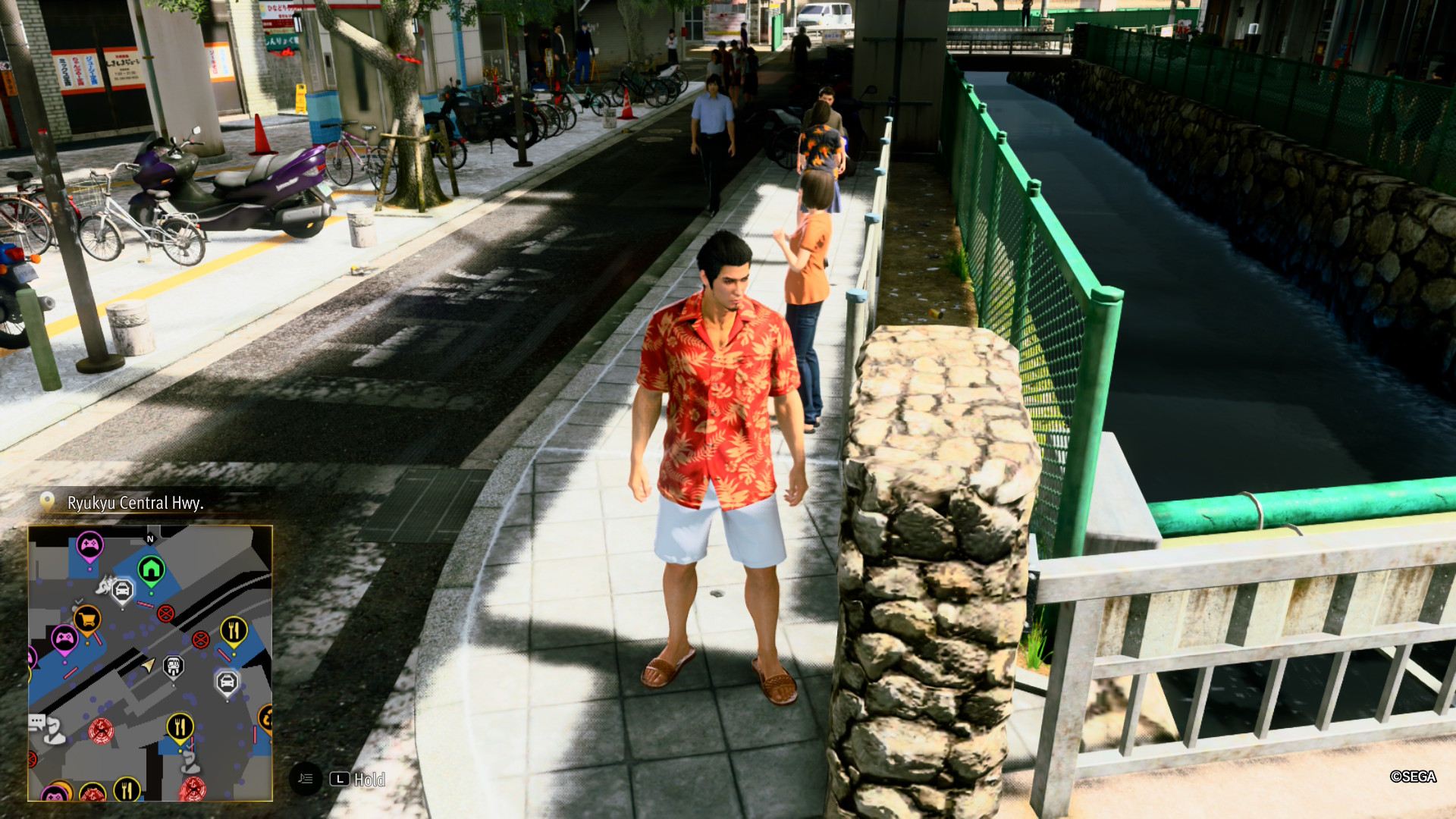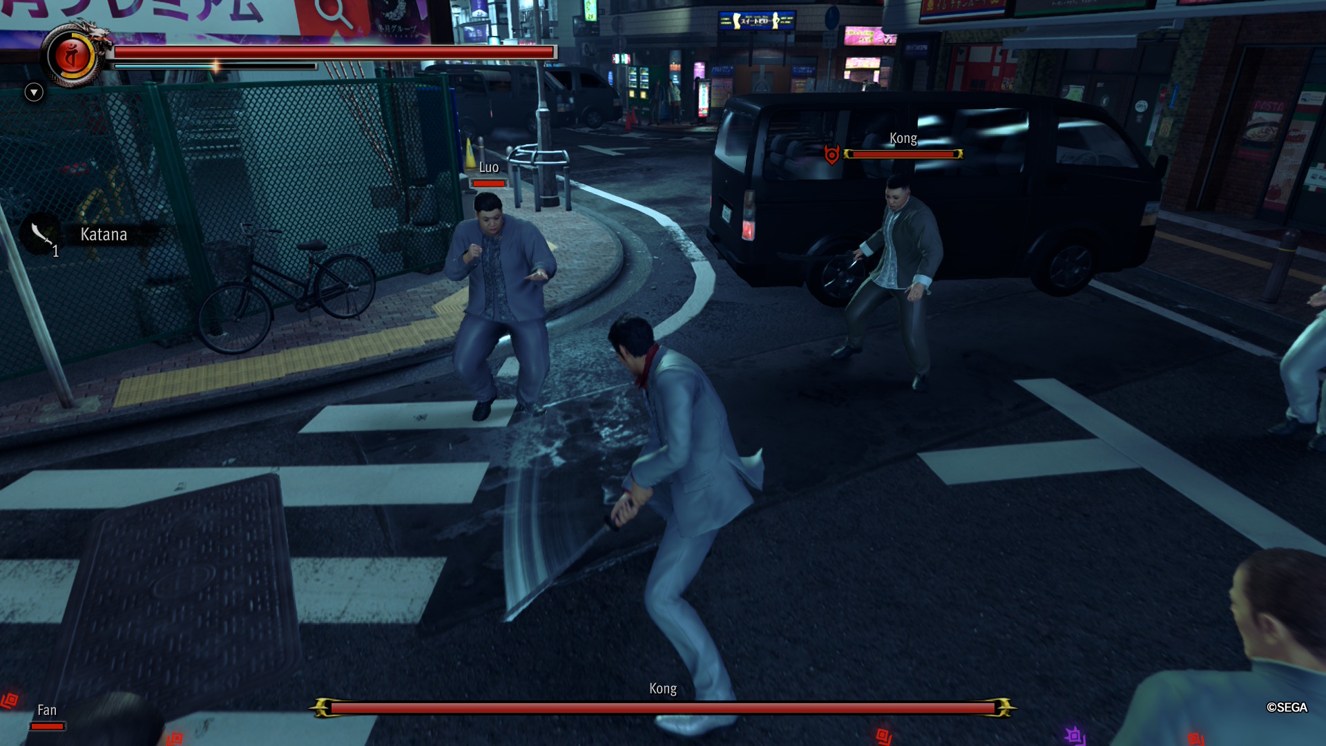 Taisteleminen tuntuu hyvältä nopeatempoisen toiminnan ja sopivien audiovisuaalisten efektien ansiosta. Iskuissa on voimaa ja painoa. Lisäksi käytössä on uusi ryukyu-tyyli, jonka aktivoimalla Kiryu osaa ottaa nunchakut ja monia muita okinawalaisia aseita avuksi taisteluihin. Vanha rystysiä kuluttava yakuza-tyyli sopii paremmin yksittäisiä kohteita vastaan, siinä missä aseistettu ryukyu on tehokkaampi isompien vihollisjoukkojen keskellä. Itse valitsin pelityylin tarinallisen kontekstin perusteella, esimerkiksi toisen yakuza-klaanin pomon päihittäminen ei vaan tunnu sopivalta kuin ainoastaan perinteisellä tavalla.
